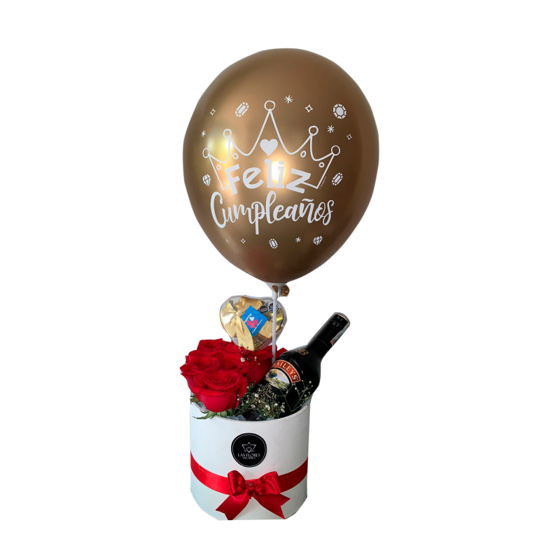 Topiario 10 rosas rojas, un Baileys, chocolates y un globo en Elio